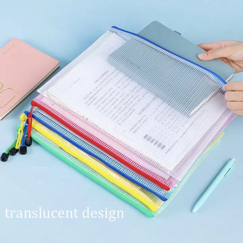 5pcs mixed color mesh zipper bag file bag waterproof zipper folder A4A5 school office supplies pencil bag storage bag