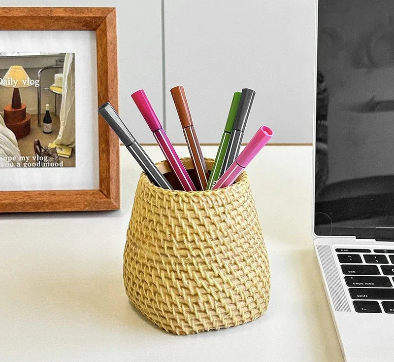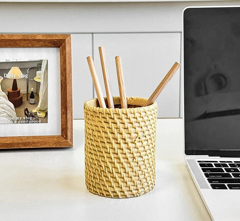 Simple Vine Pen Holder Home Office Minimalism Rattan Pen Holder Stationery Storage Plastic Tableware Holder Desk Accessories