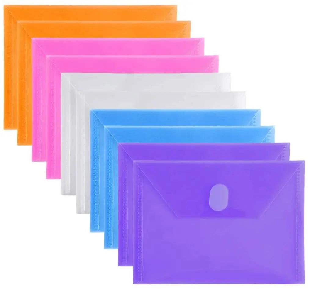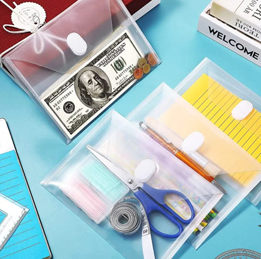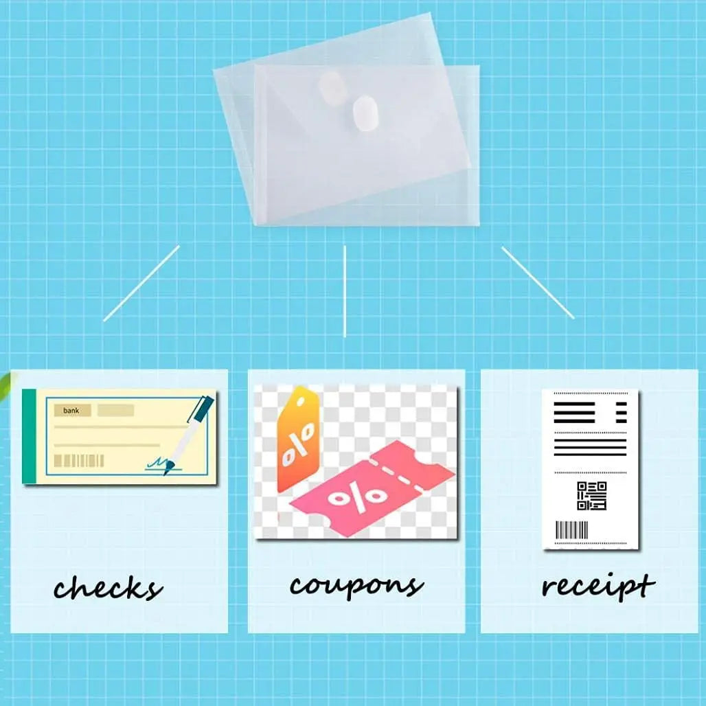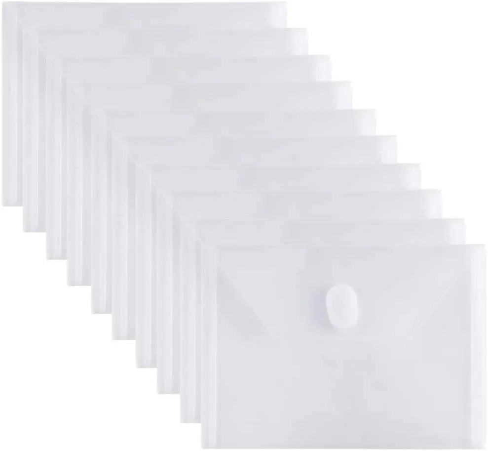 10 Packs A5 Clear Plastic Small Envelope with Hook & Loop Closure 5 x 7 Ploy Envelope for Home Office Receipe/Check/Photos