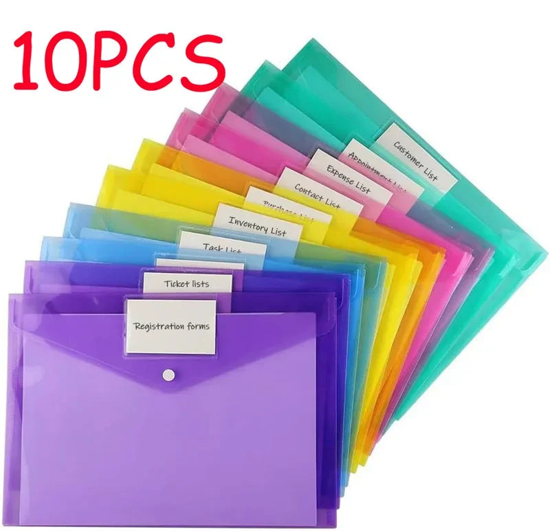 5/10pcs A4 Folders Plastic Envelopes Clear File Folder for Document Poly File with Label Pocket Snap Button for Office Organizer